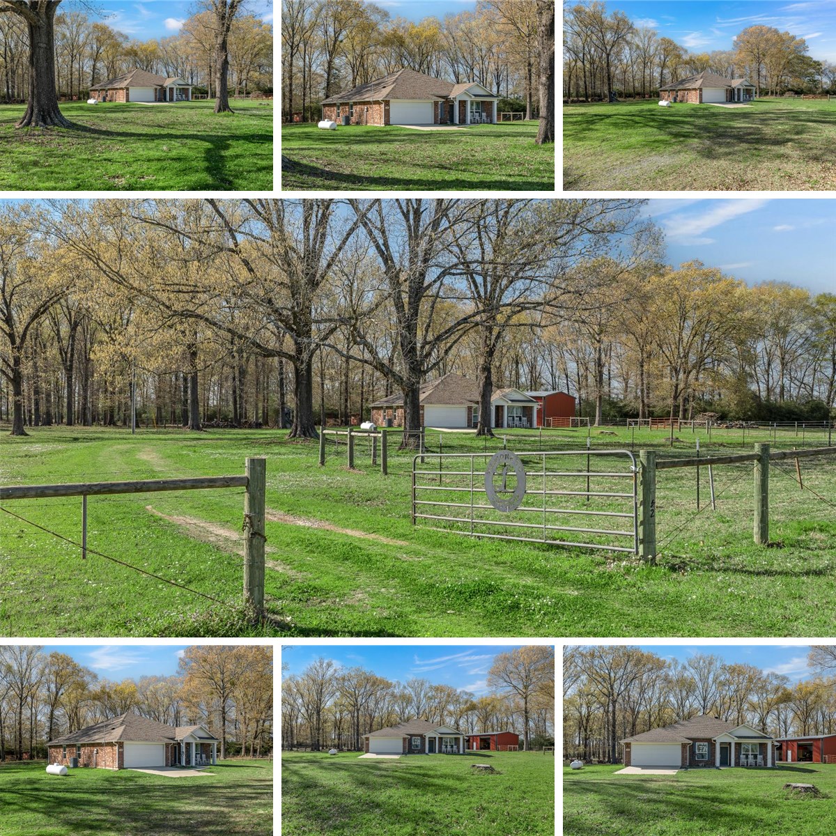 1 Acre rolling estate featuring a 4BR/2BA brick home + 30x50 outbuilding w/finished quarters & full bath in East Texas . Just 10 mins from Center or Tenaha, boasts rolling pastureland & towering trees. Main house offers an open floor plan w/elegant finishes, soaring ceilings, LVP flooring, neutral paint, chic lighting & fans. Island kitchen shines w/granite countertops, tile backsplash, SS appliances & walk-in pantry. It opens to the dining room & family room w/stunning views throughout. Posh owner’s suite features a large closet & ensuite w/dual sinks & oversized walk-in shower. Spacious guest bedrooms have large closets & share a full bath. Outbuilding w/workshop has 3 rolling bay doors, bright lighting & oversized fans. Finished quarters currently sleep 6 & include a full bath—perfect for guests, hired hands or overflow company. A peaceful, private retreat with room to roam & endless possibilities.